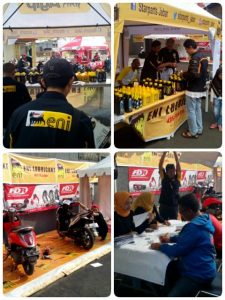 BANDUNG, Ada sajian acara menarik yang ditujukan pada para calon pemudik bersepeda motor dan masyarakat umum di Kota Bandung menjelang Hari Raya Idul Fitri 1438 H, Distributor pelumas mesin merk Eni Lubricant (Agip) menggelar kegiatan ganti oli gratis khusus sepeda motor matic yang bertempat di Main Dealer Star Parts Jl. Soekarno Hatta 159 Caringin Kota Bandung, Minggu (4/5).