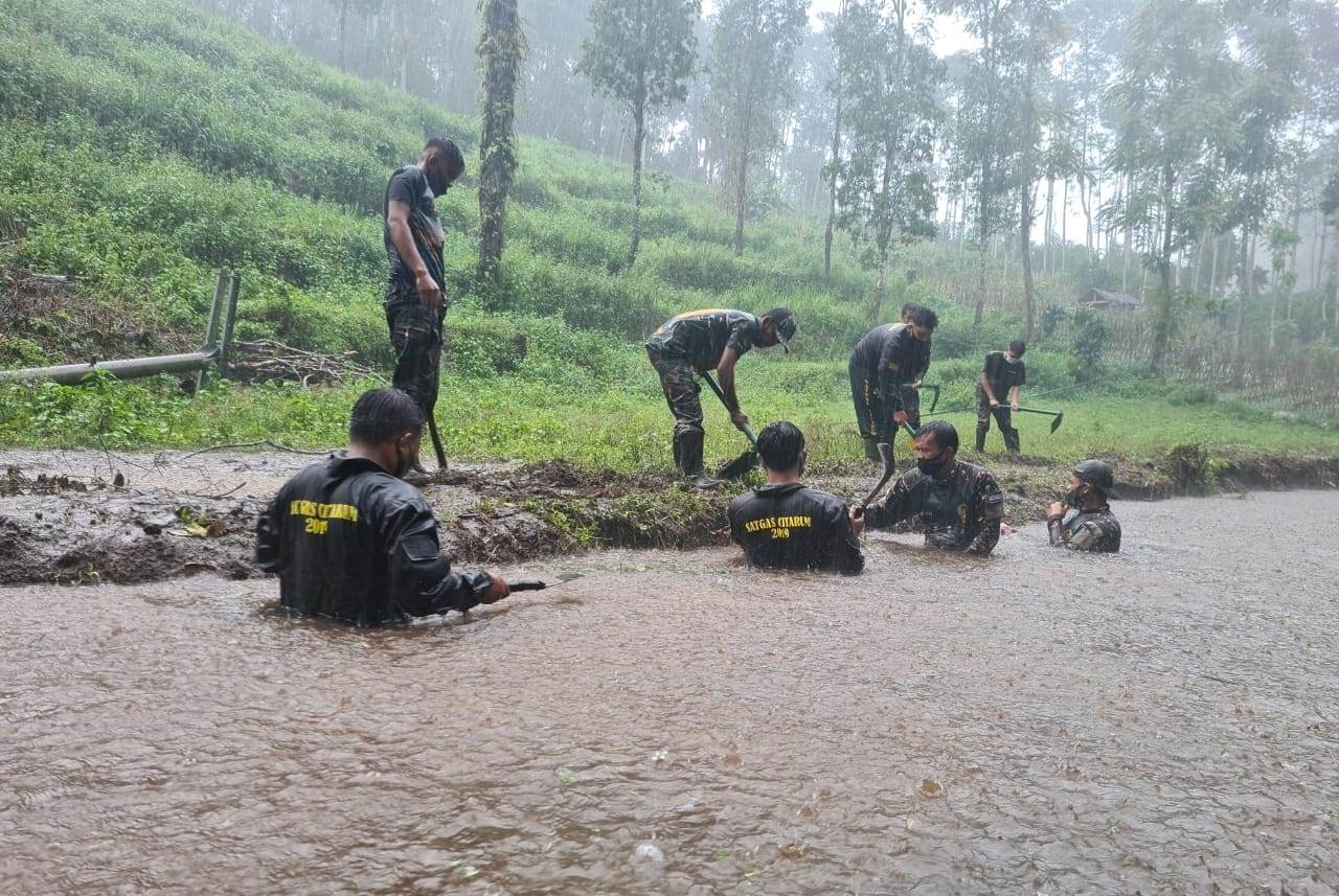 “Kita sisir di sepanjang kira-kira 1.700 meter daerah aliran sungai,” ungkap Serka Eri Krisyana.