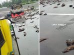 Pikap Pengangkut Lele Terguling di Tol Japek, Ratusan Ikan Berserakan di Jalan