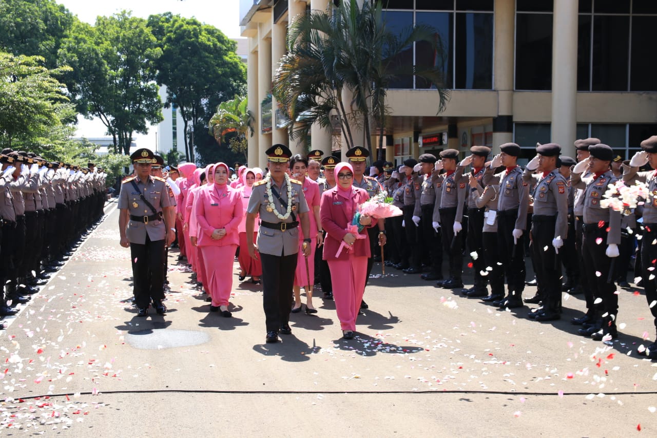 Acara dimulai dengan penyampaian kata – kata tradisi dan dilanjutkan dengan pengalungan serta penyerahan buket bunga dari Kapolda Jabar Irjen Pol. Drs. Agung Budi Maryoto, M.Si., beserta Ibu Ketua Bhayangkari kepada Brigjen Pol. Drs. Supratman, MH., didampingi Ibu Wakapolda Jabar.