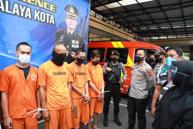 Kapolres Tasikmalaya Kota AKBP Aszhari Kurniawan didampingi Kasat Narkoba AKP Ade Hermawan menjelaskan, bahwa dari 10 tersangka yang diamankan, terdapat mantan anggota Polri yang dipecat dari kesatuannya tahun 2014 yang tertangkap saat mengedarkan narkoba jenis sabu sabu.