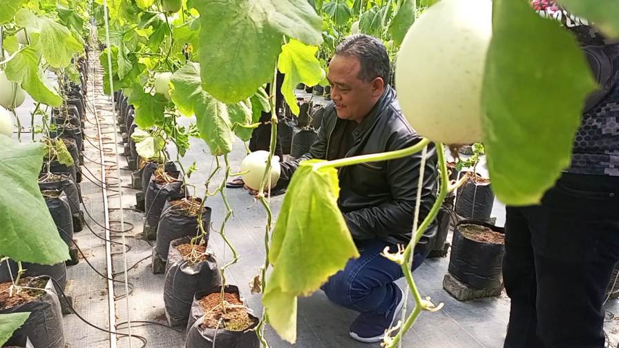 Tidak hanya melihat-lihat, Benny Rhamdani juga sempat mencicipi buah melon yang baru dipetik langsung dari pohon. “Ada kriuk-kriuknya,” ujarnya sambil tersenyum.