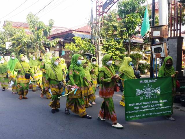 Pemandangan tersebut adalah Kirab Aswaja yang dilaksanakan Pimpinan Ranting (PR) Muslimat Nahdlatul Ulama (NU) Kelurahan Krapyak dalam memeriahkan Hari Lahir (Harlah) ke 96 NU yang digelar oleh Pengurus Ranting Nahdlatul Ulama (PRNU) Kelurahan Krapyak.