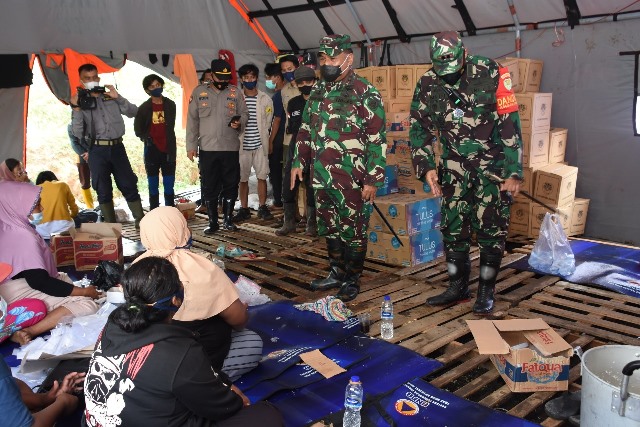 Selain meninjau, juga memberikan bantuan kepada korban banjir berupa bantuan sembako, termasuk kepada warga Kampung Warung Sari yang enggan mengungsi turut mendapatkan paket sembako yang diantar langsung oleh anggota TNI.