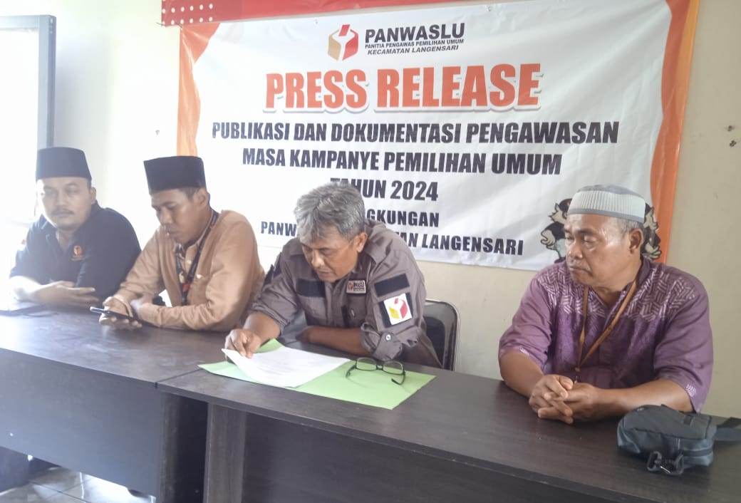 BANJAR, Sorotindonesia.com — Panwaslu Kecamatan Banjar dan Panwaslu Kecamatan Langensari melaksanakan press release dan publikasi pengawasan masa kampanye pada Pemilu tahun 2024, Selasa (30/1/2024), bertempat di kantor Panwaslu Kecamatan Banjar dan Kecamatan Langensari, Kota Banjar, Jawa Barat.