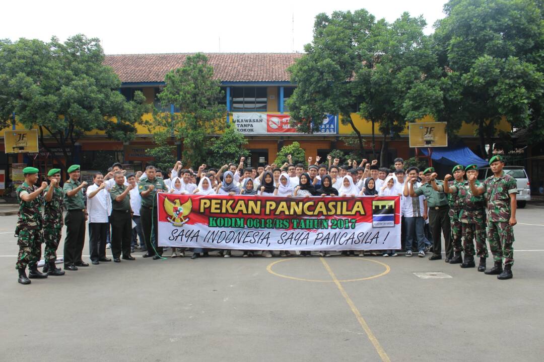 BANDUNG, Kodim 0618/BS Kota Bandung melaksanakan Pekan Pancasila yang bertemakan “Aku Indonesia, Aku Pancasila” di SMK Merdeka Jl. Pahlawan No. 54 Kota Bandung, Rabu (7/6).