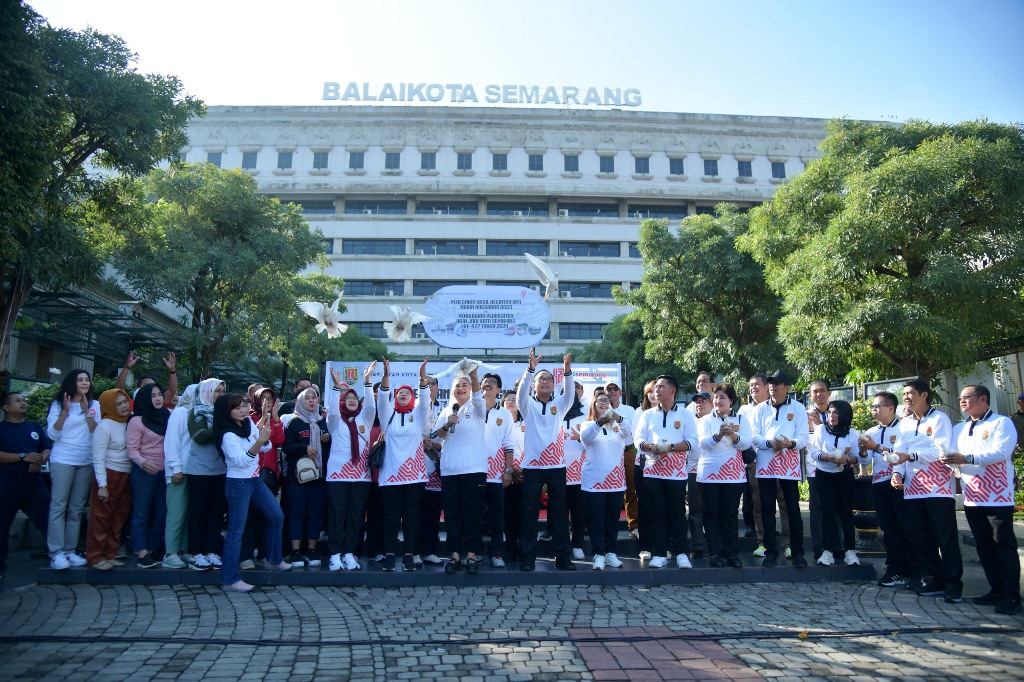 SEMARANG – Logo peringatan Hari Ulang Tahun (HUT) ke-477 Kota Semarang telah resmi dilaunching. Peresmian ini dilakukan oleh Wali Kota Semarang, Hevearita Gunaryanti Rahayu didampingi Sekda Kota Semarang, Iswar Aminuddin dan seluruh OPD di lingkungan Pemerintah Kota (Pemkot) Semarang dalam kegiatan Pembukaan Peringatan Hari Jadi Kota Semarang (HJKS) ke-477 tahun 2024 di halaman Balai Kota Semarang, Jumat (2/2/2024).