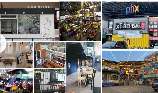 Seperti misalnya di PHX Grogol, material bangunan didominasi oleh dinding kontainer warna warni cerah. Dengan kapasitas maksimalnya hingga 200 orang (saat ini masih dibatasi oleh prokes), di lokasi ini pelanggan bisa memilih kuliner kesukaan yang ditawarkan oleh sekitar 35 brand ternama. Belum lagi ada fasilitas ruang khusus ber-AC serta hiburan live music pada setiap hari Jumat dan Sabtu (malam dari pukul 19.00 hingga 22.00 WIB). Menariknya, pengelola juga menyediakan meja biliar untuk pengunjung yang hobi pada olahraga tersebut.