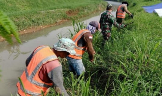 “Anggota Satgas dan warga pelopor melaksanakan kegiatan pemeliharaan rutin korve pembabatan rumput di bantaran Sungai Cidurian Kampung Cihaurgelis RT 02 RW 01, Desa Buah Batu Kecamatan Bojongsoang,” jelas Pelda Yahuza.