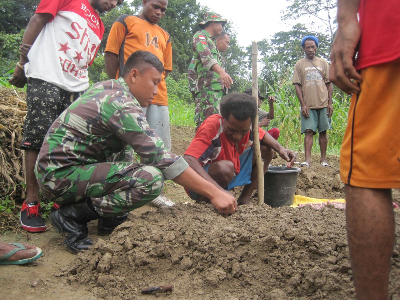 Keerom 15,- Personil Satgas Pamtas RI-PNG Yonmek 512/QY yang di pimpin oleh danpos Kalimo Letda Inf Eko Widianto memberikan penyuluhan pertanian tentang cara penanaman/pembudidayaan bawang merah kepada masyarakat yang ada di daerah perbatasan RI-PNG di kampung Kalimo distrik Waris kabupaten Keerom propinsi Papua.