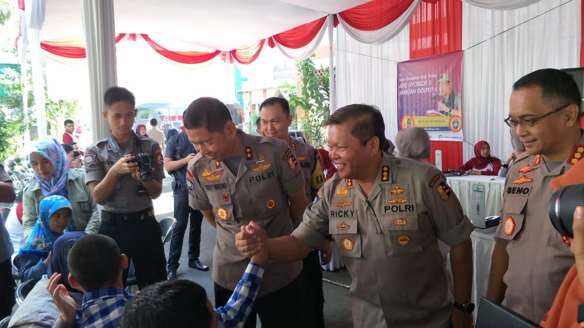 Lembang, KBB,- Dalam rangka cipta kondisi menjelang pemilu 2019, jajaran Polri melaksanakan kegiatan silaturahmi melalui bhakti kemanusiaan yang digelar di halaman Kantor Pemerintahan Desa Lembang, Kecamatan Lembang, Kabupaten Bandung Barat, Kamis (11/4/2019).